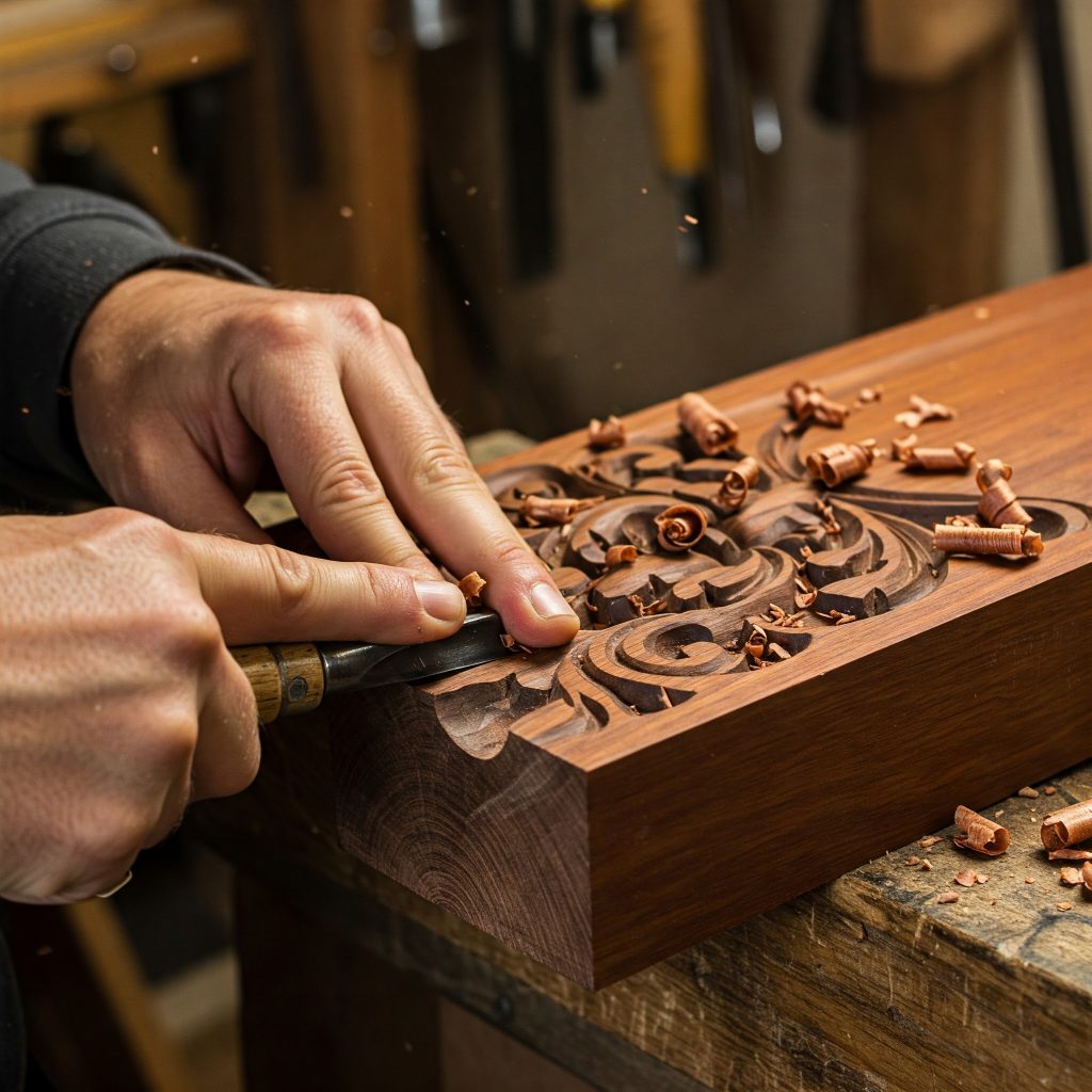 Walnut is harder and more challenging to carve but offers a rich, dark color and beautiful grain. It’s ideal for detailed, high-end pieces.